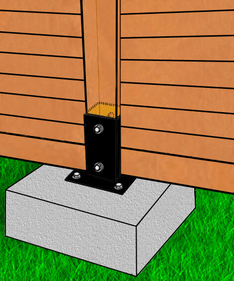 PIED DE POTEAU POUR BOIS RAINURÉ 9 X 9 HT 150 Bte de 10