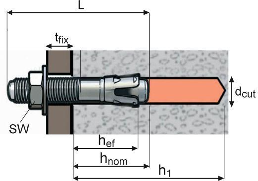 | Stainless-steel threaded expansion anchor bolt | dcut | L | tfix | h1 | hef | SW |