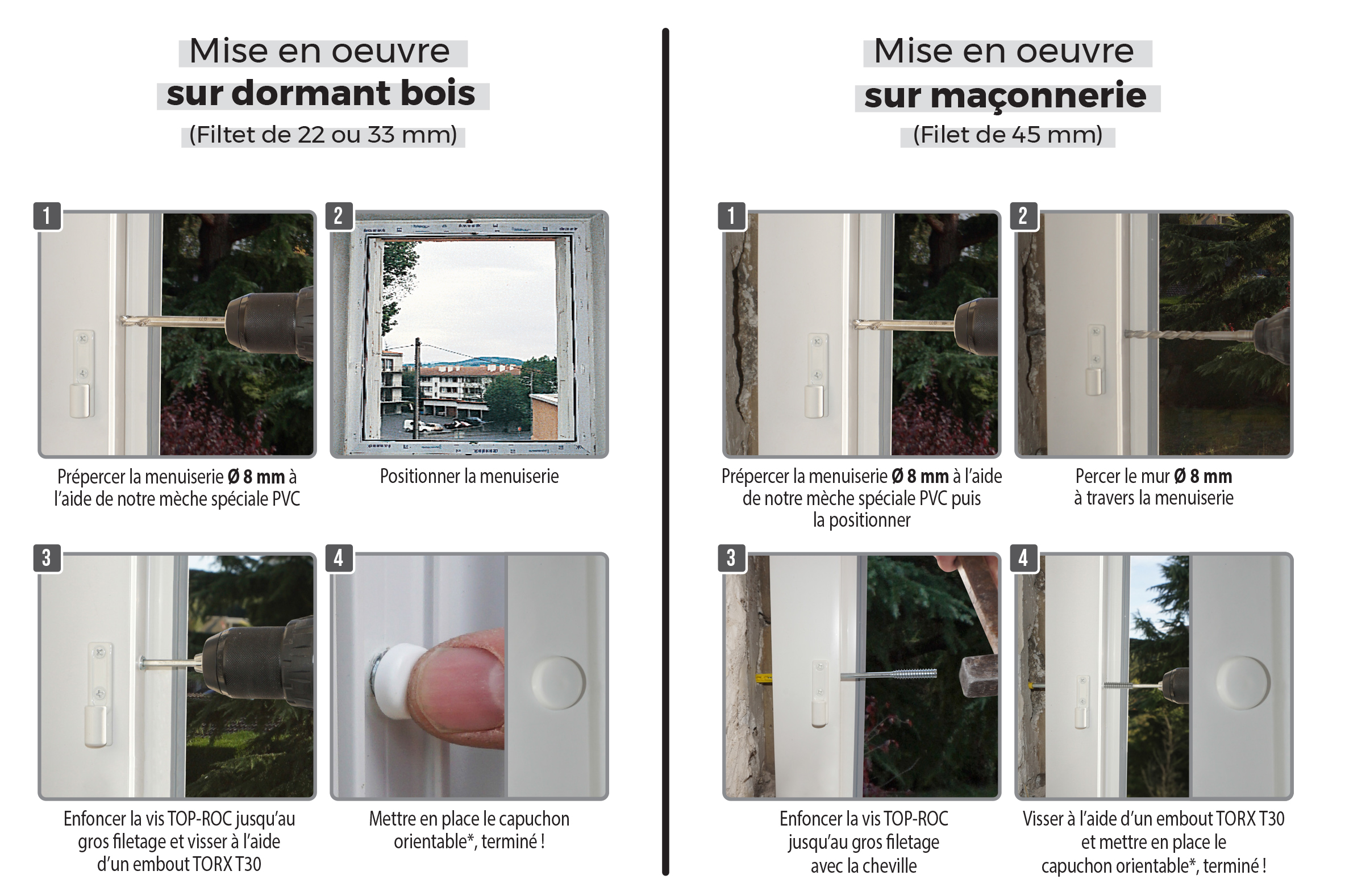 - Wall plugs Ø 8 x 68 supplied (only for TOP-ROC screws from 100 mm to 180 mm long).
