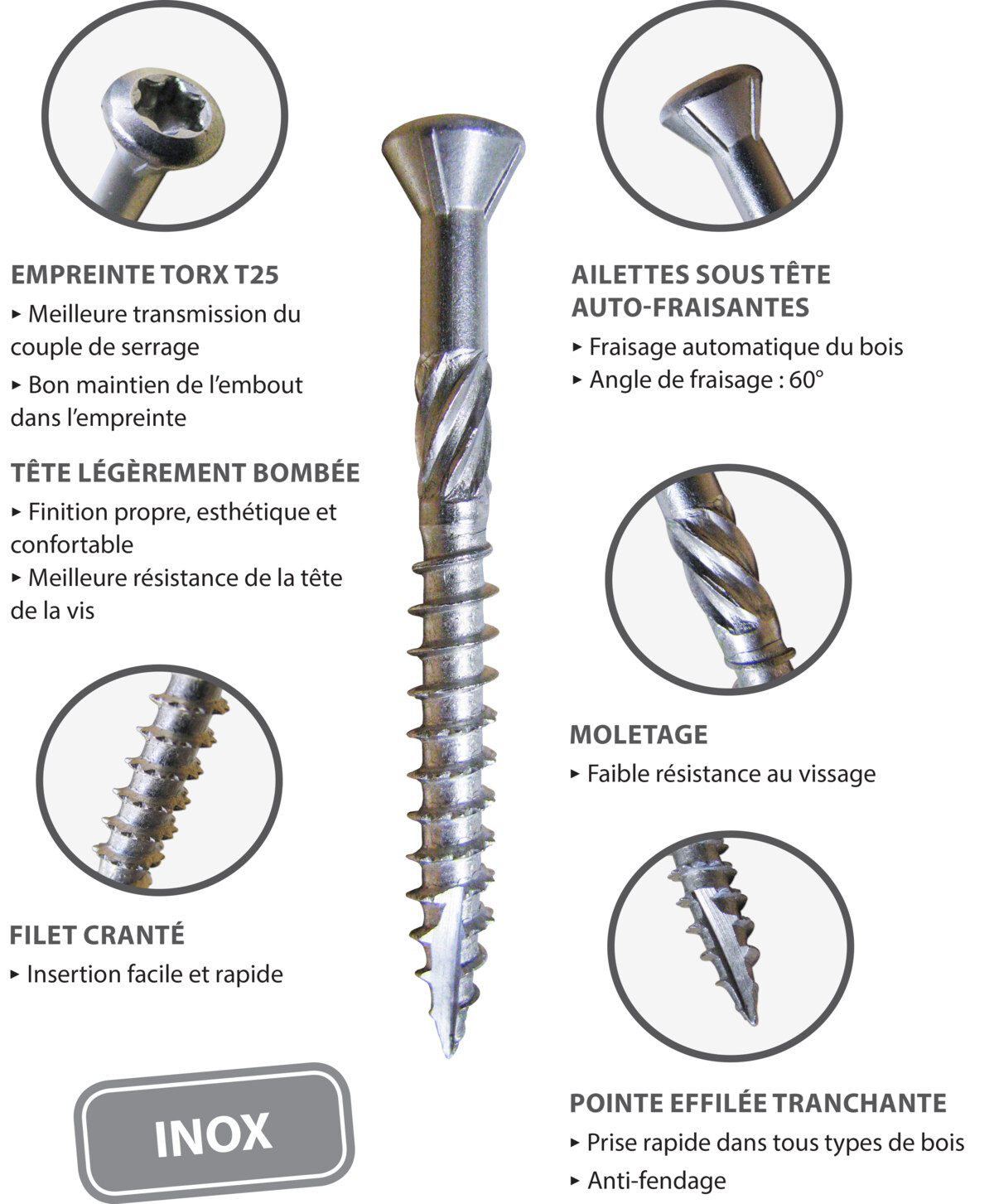 VIS TERRASSE INOX 5 X 60 T25 Bte de 200