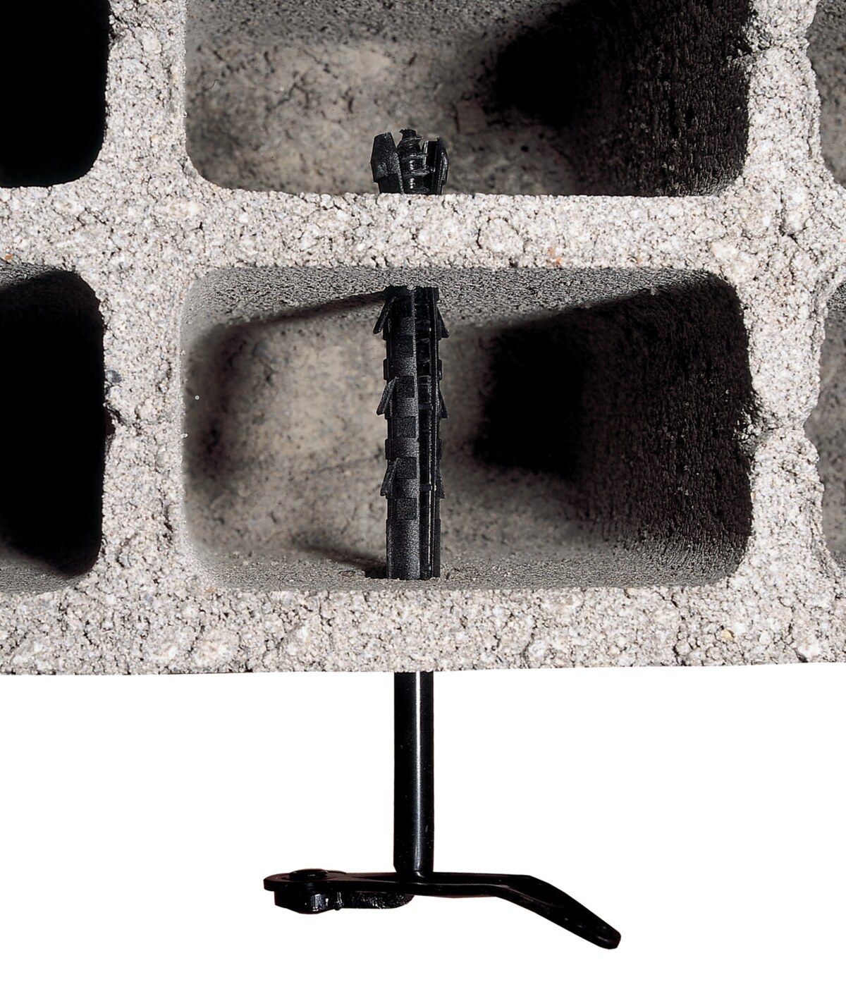 - Très bonne tenue : la cheville s'ancre sur plusieurs alvéoles du support.