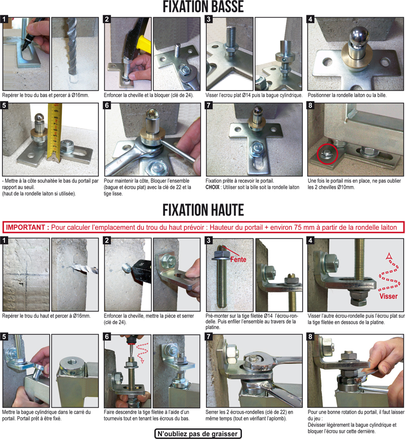 - Avantage : on fixe la patte du haut puis on met en place le portail
