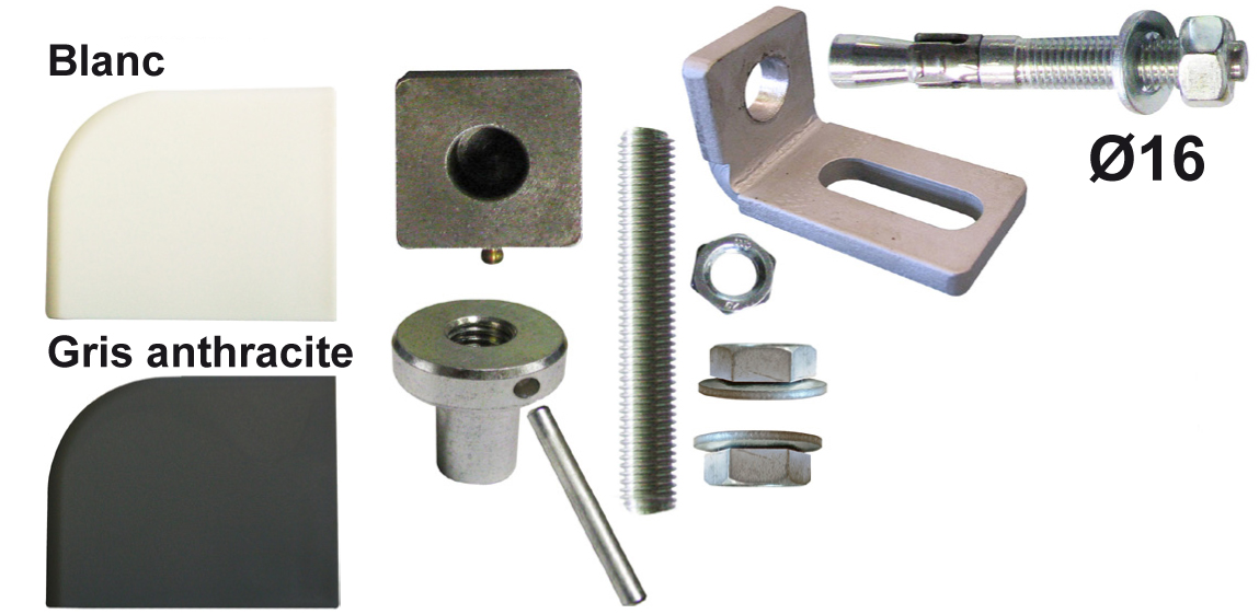 - 1 carré (à souder sur le portail - perçage Ø18)