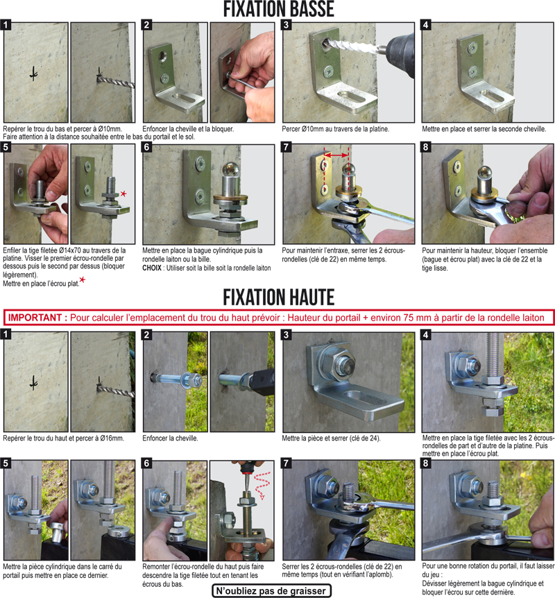 - Avantage : on fixe la patte du haut puis on met en place le portail