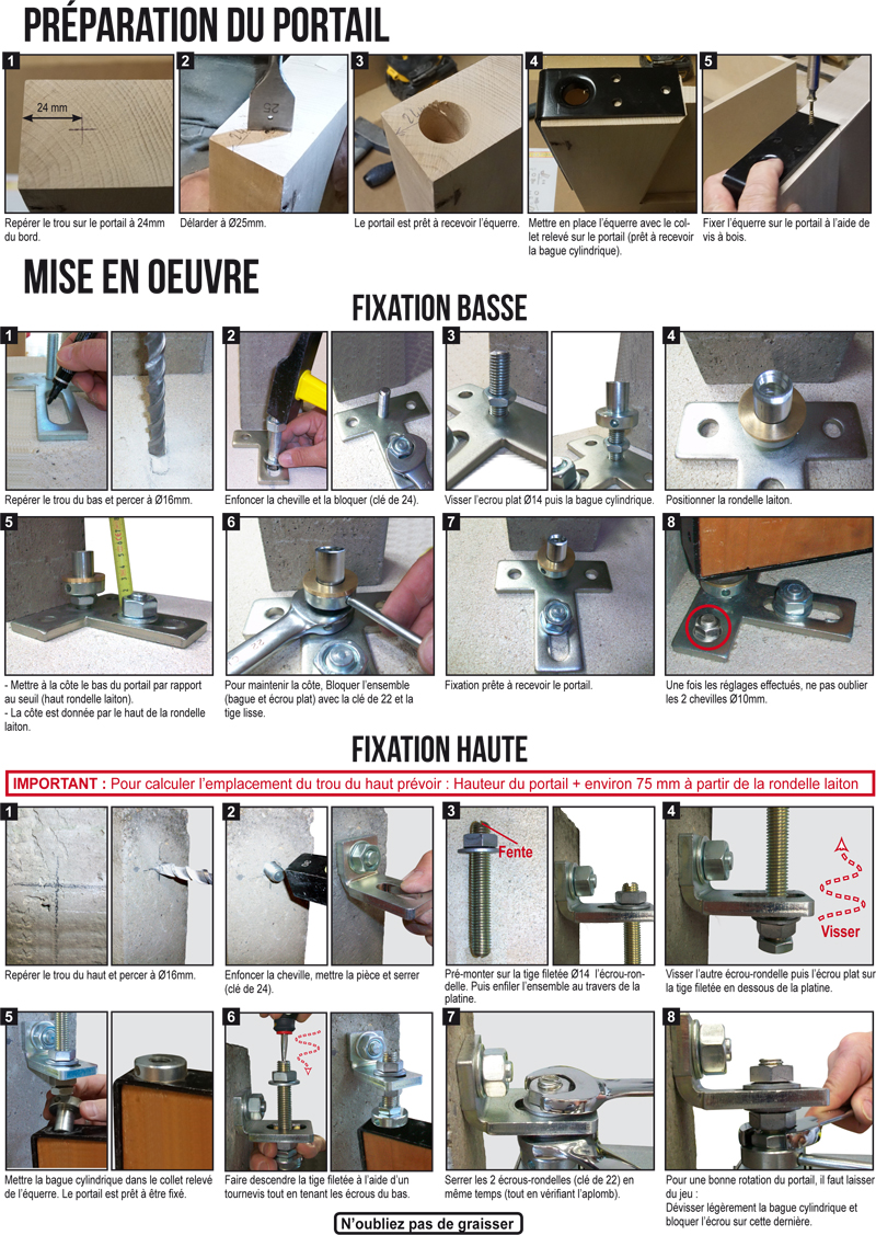 - Avantage : on fixe la patte du haut puis on met en place le portail.