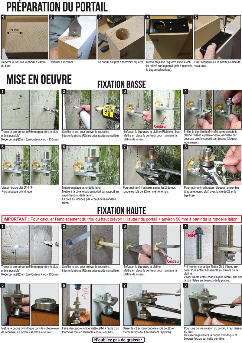 - Avantage : on fixe la patte du haut puis on met en place le portail.