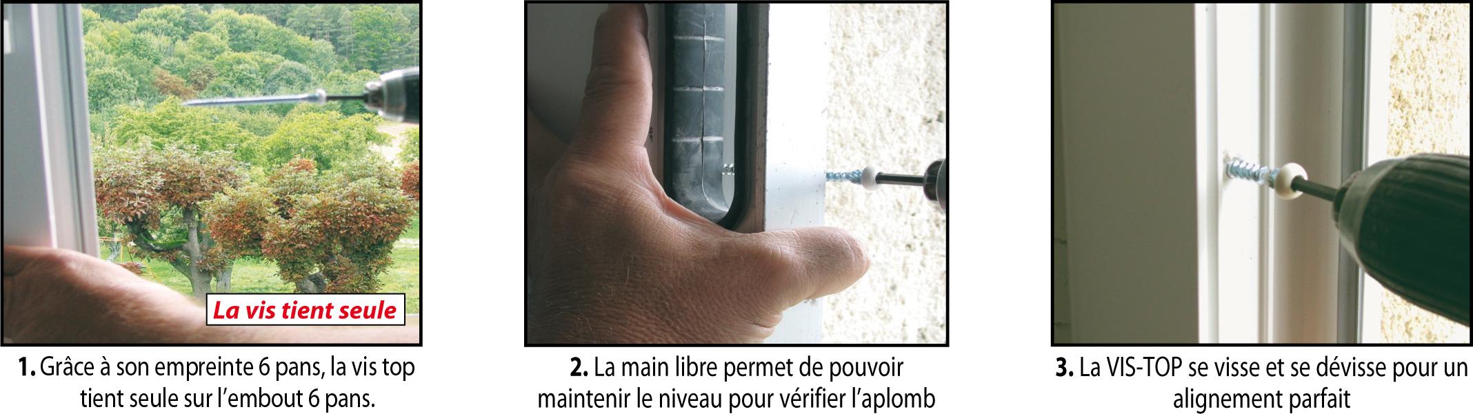 - Vissage direct dans le dormant bois sans pré-perçage.