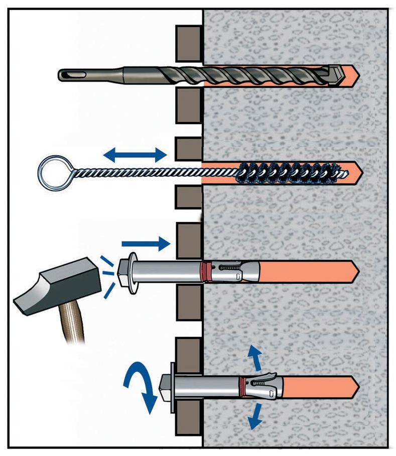 - Toutes fixations lourdes à très lourdes dans le béton : garde-corps, portiques, pièces en acier, ...