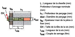 | Cheville Fonte | dcut | L | Lvis | tfix | h1 | tinst | CH | |