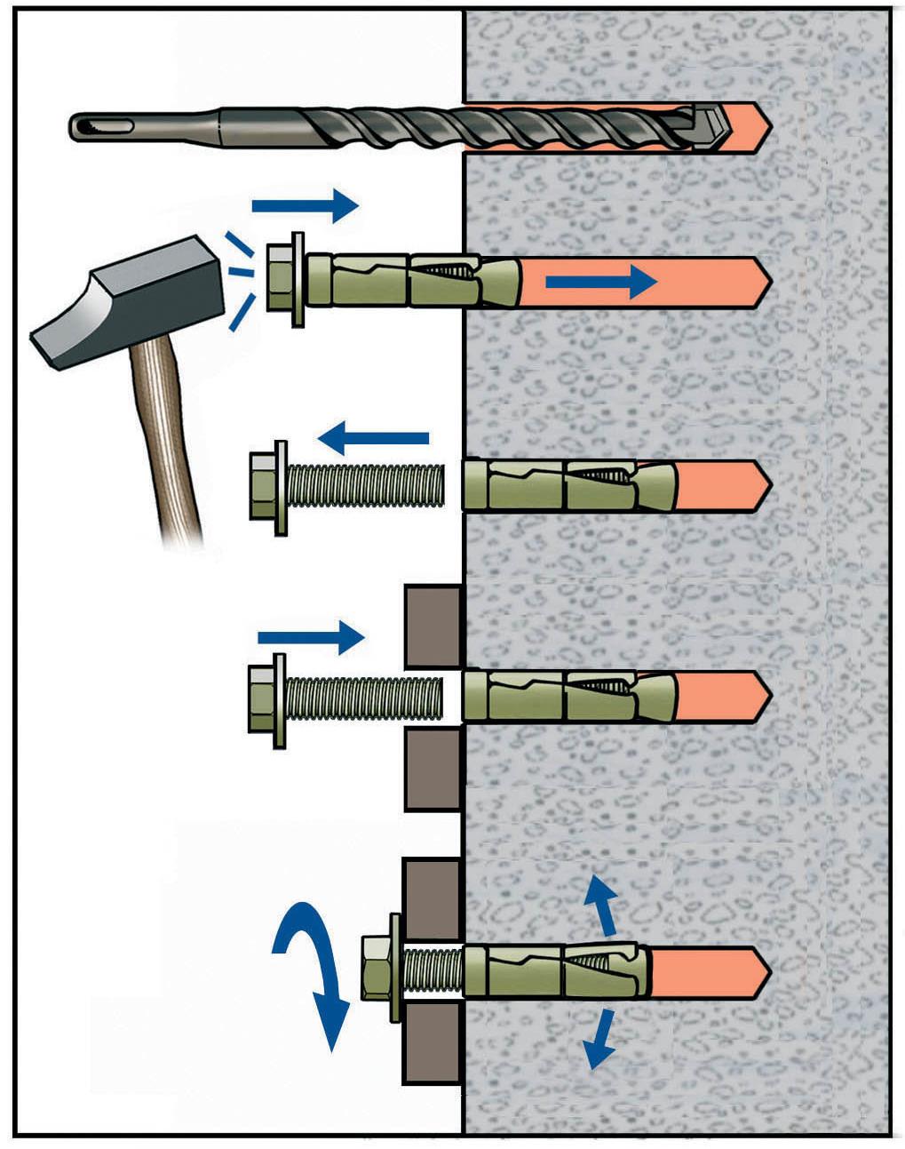 - Toutes fixations dans le béton et les matériaux pleins : garde-corps, portiques, pièces en acier...