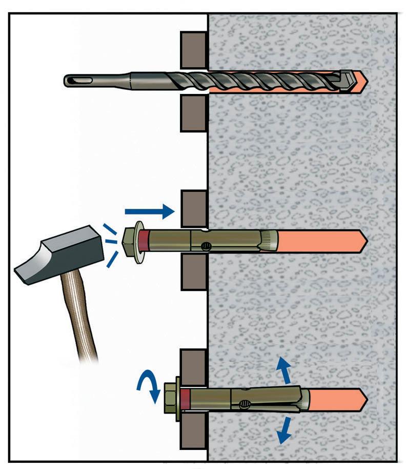 - Toutes fixations dans le béton et les matériaux pleins : garde-corps, portiques, pièces en acier, ...