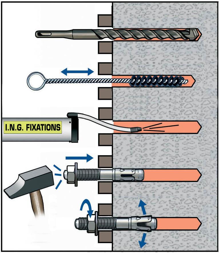- Toutes fixations dans le béton : garde-corps, portiques, pièces en acier, ...
