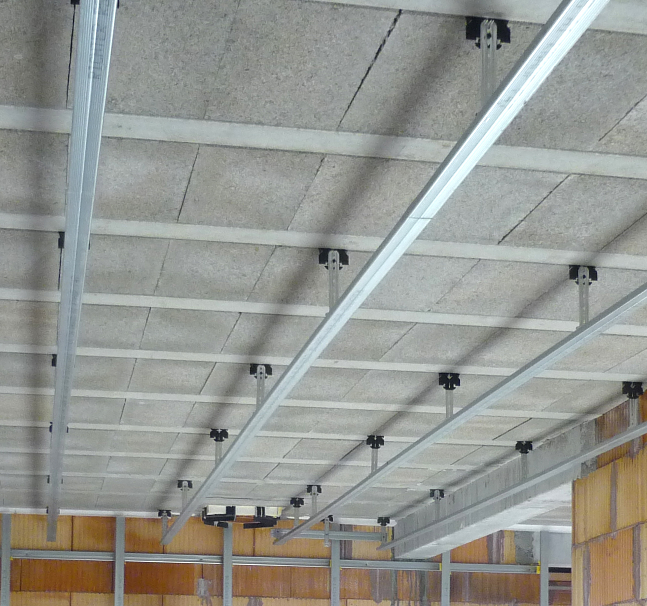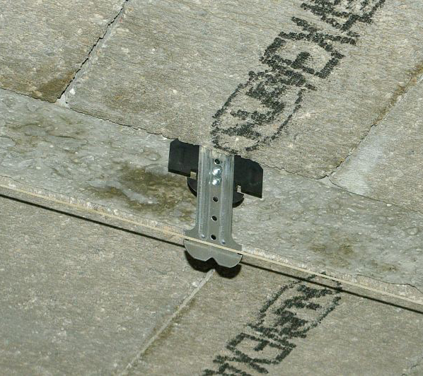 - Suspension pour rails de plaque de plâtre entre deux hourdis béton.