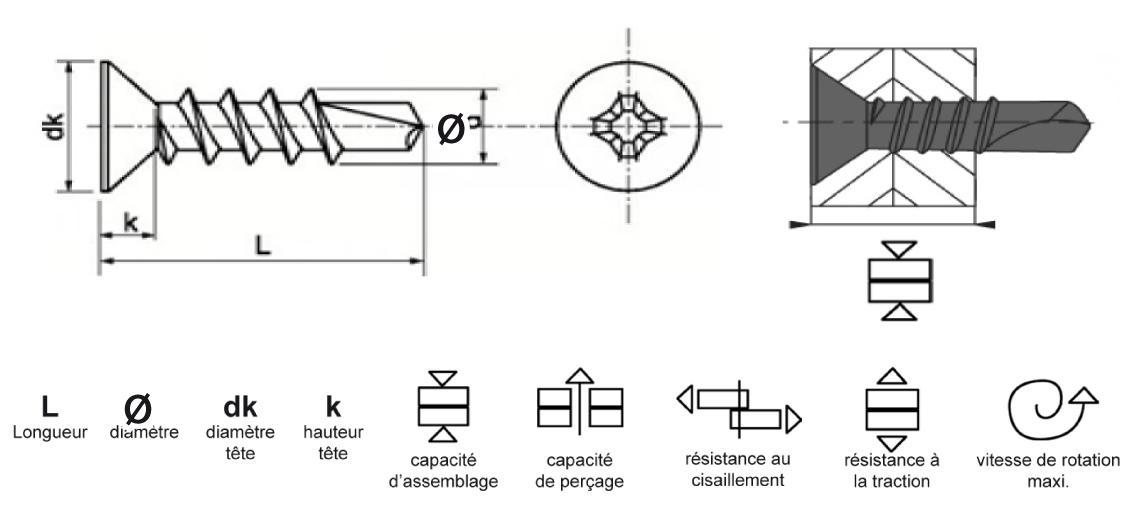 | 3,9 x 19 | 3,9 | 19 mm | PH 2 | 7,5 mm | 2,3 mm | 13 mm | 2 mm | 360 kg | 600 kg | 2500 tr/min |