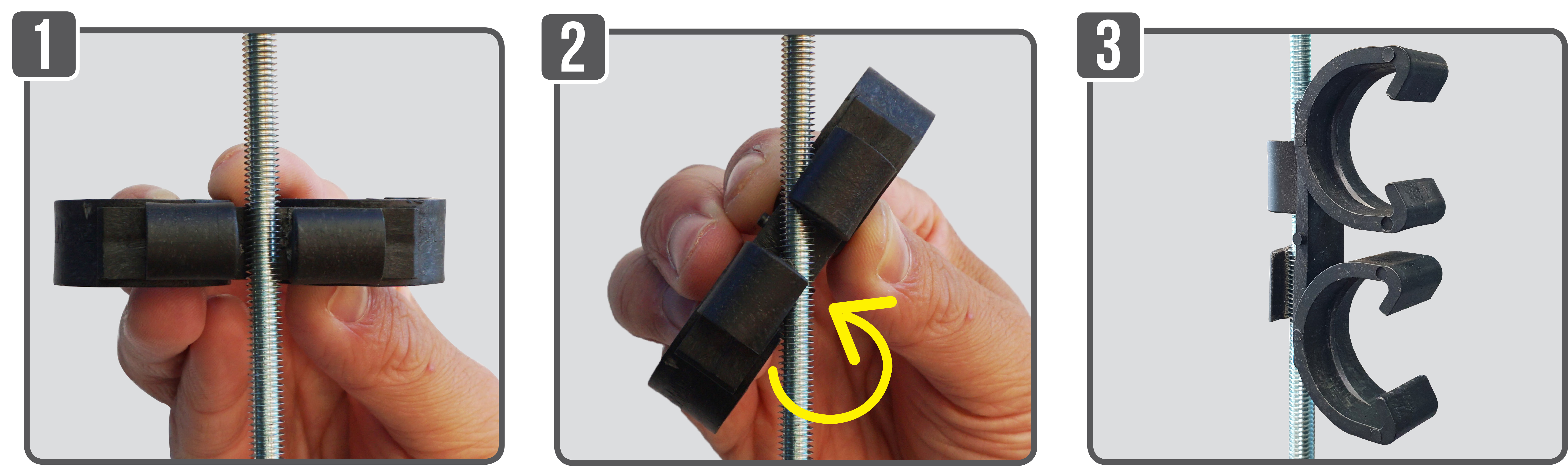- Facile et rapide : clipsage à la main sur treillis ou tige filetée.