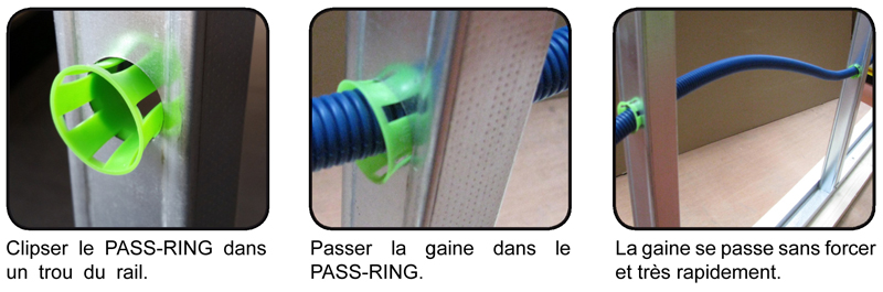 - Gain de temps : les gaines se passent rapidement et sans forcer dans les trous des rails de cloisons en plaque de plâtre.
