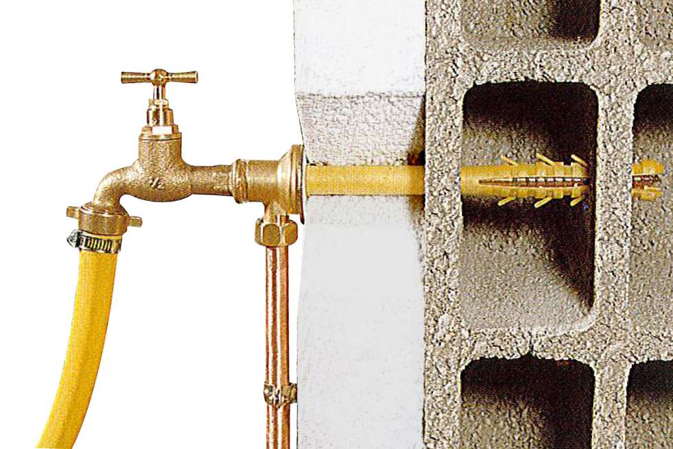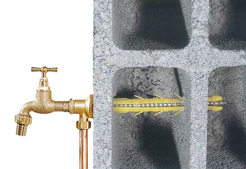 - Fixation de robinet de puisage pour matériaux creux avec ou sans isolation extérieure.