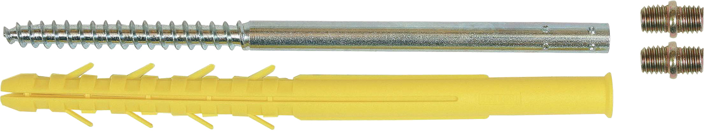 - Fixation de dauphins : cheville Ø12, Vis double filet Ø10 taraudage M8, raccord M8/M7, raccord M8/M8.