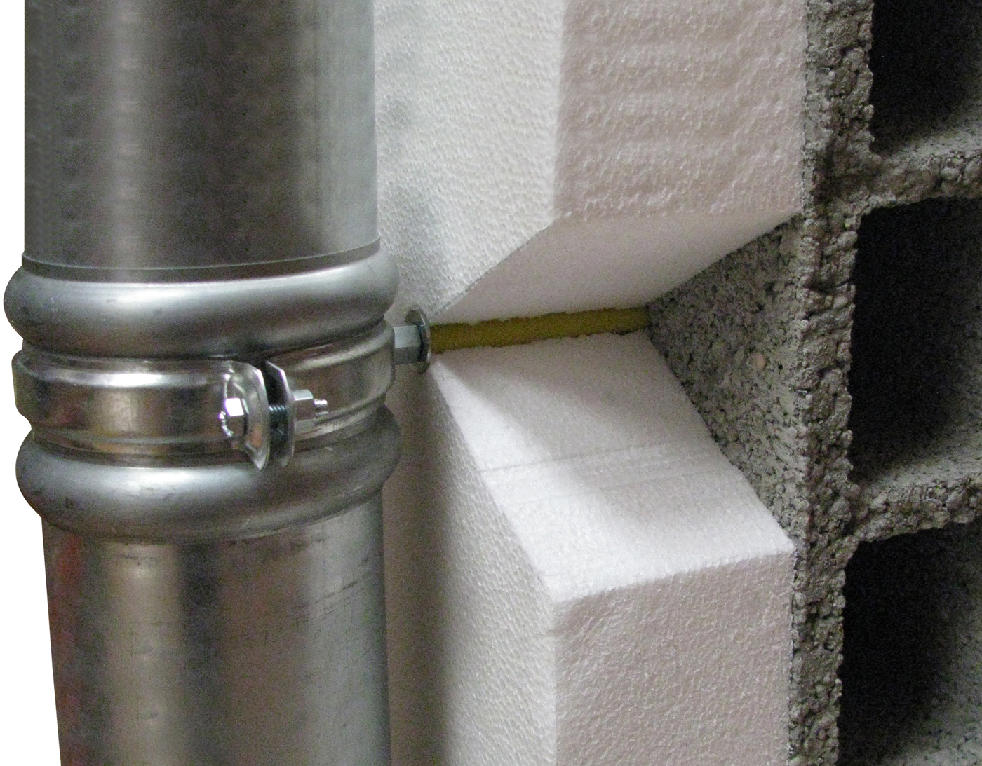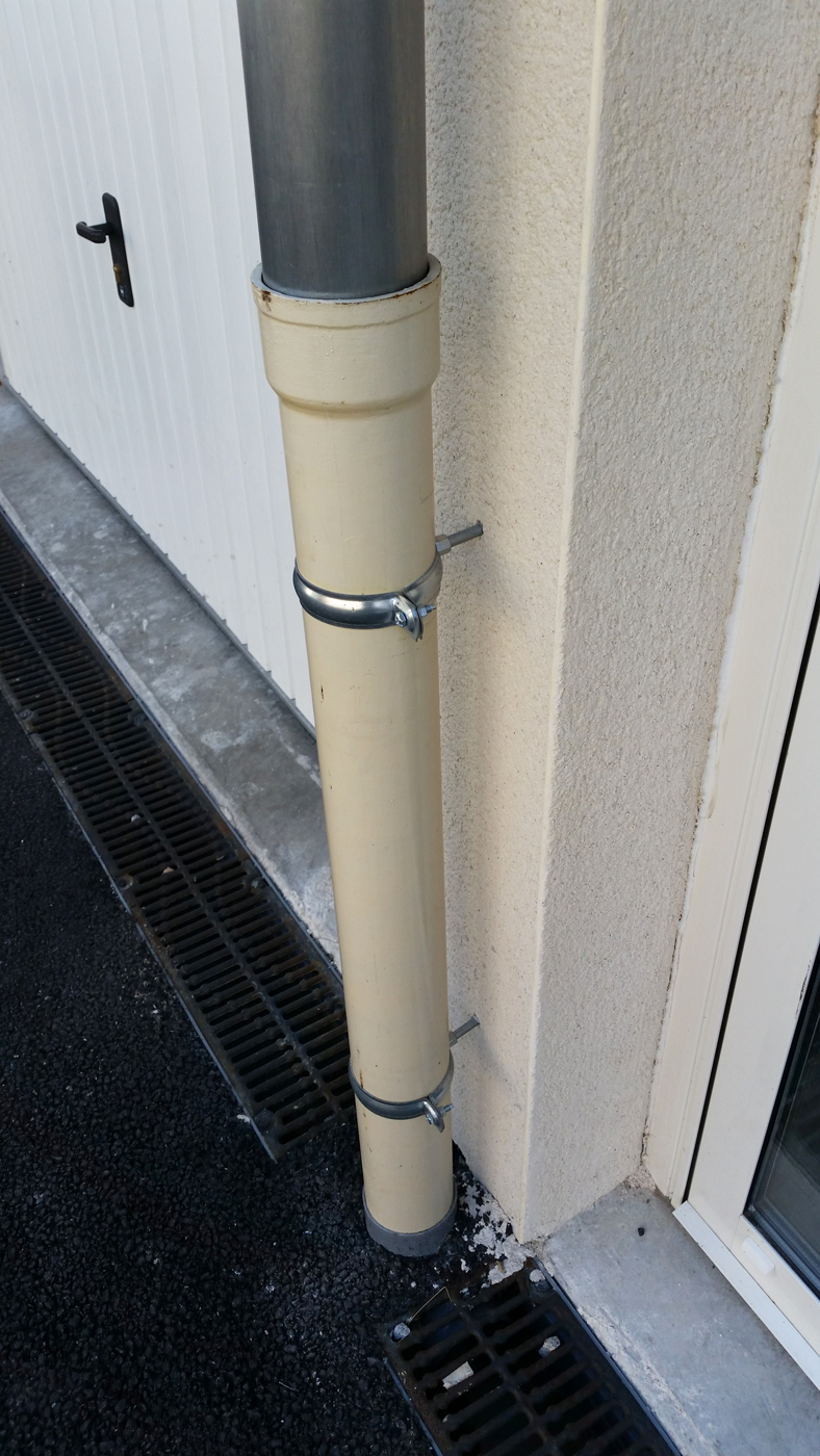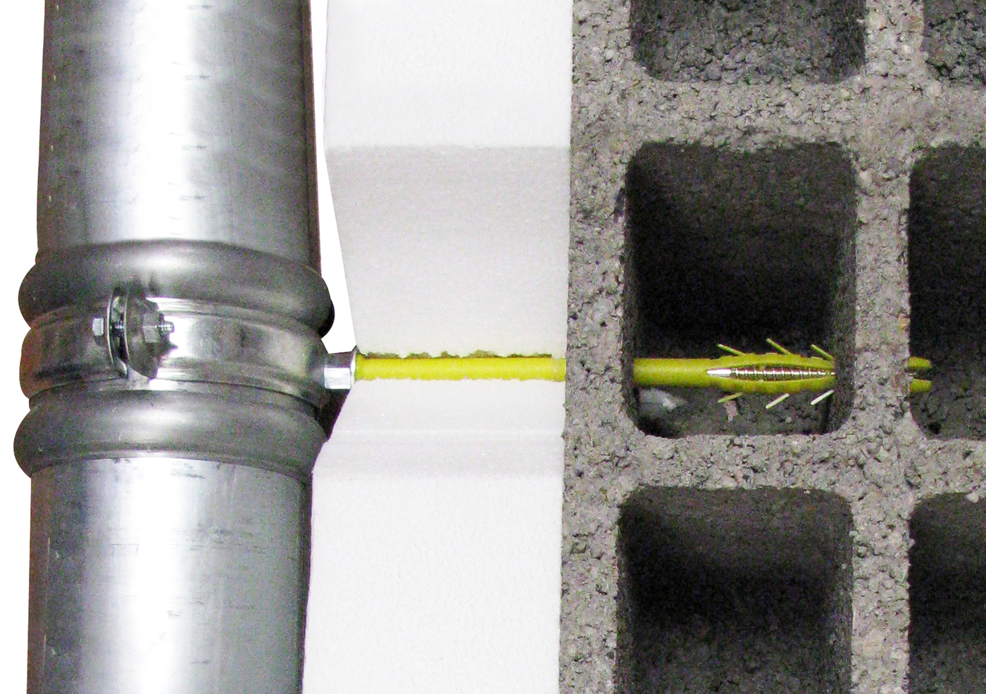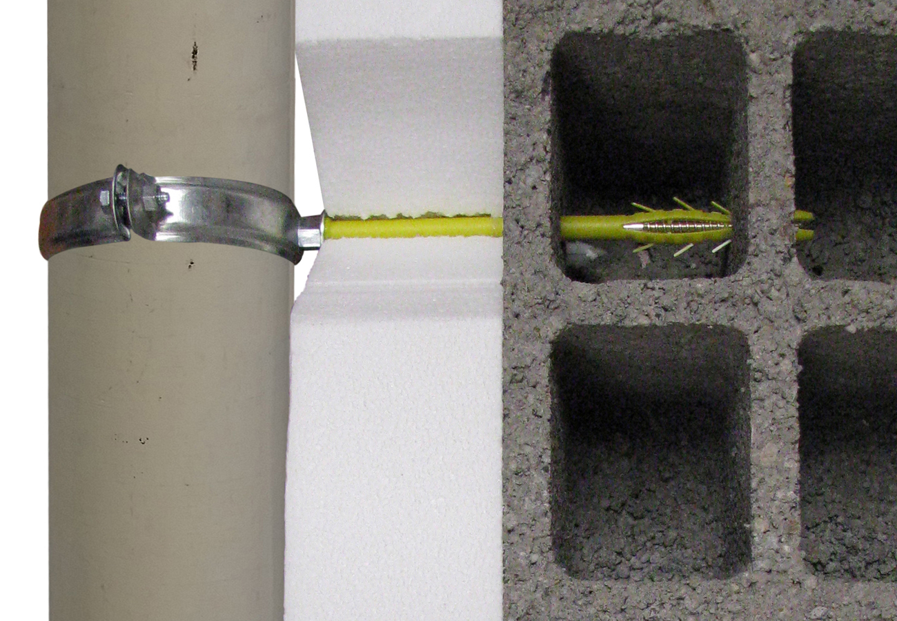 - Fixation de descente d'eaux pluviales pour tous matériaux avec ou sans isolation par l'extérieur.
