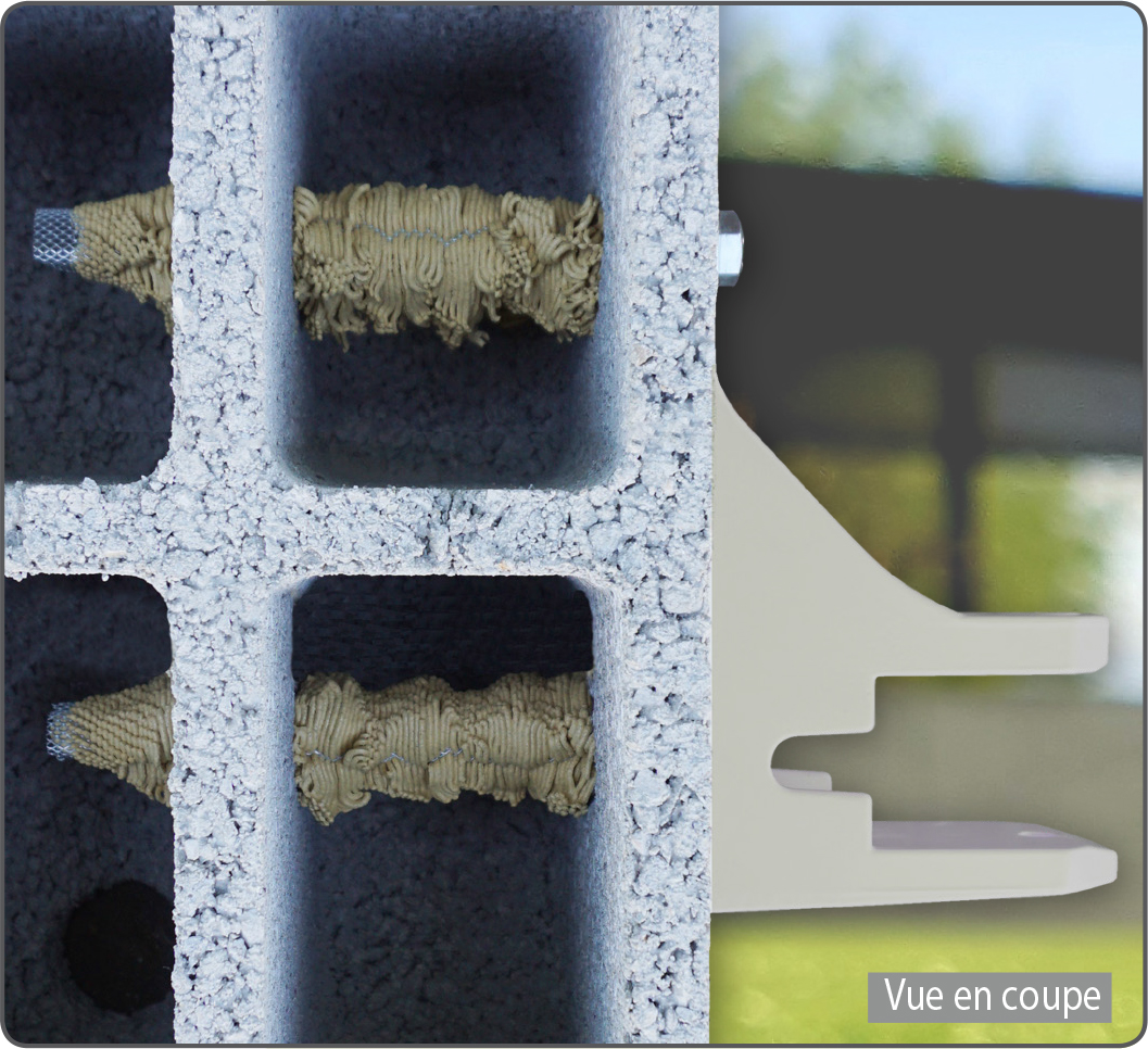 - Fixations lourdes dans les matériaux creux : stores-bannes, vérandas, barrières, gardes-corps, paraboles...